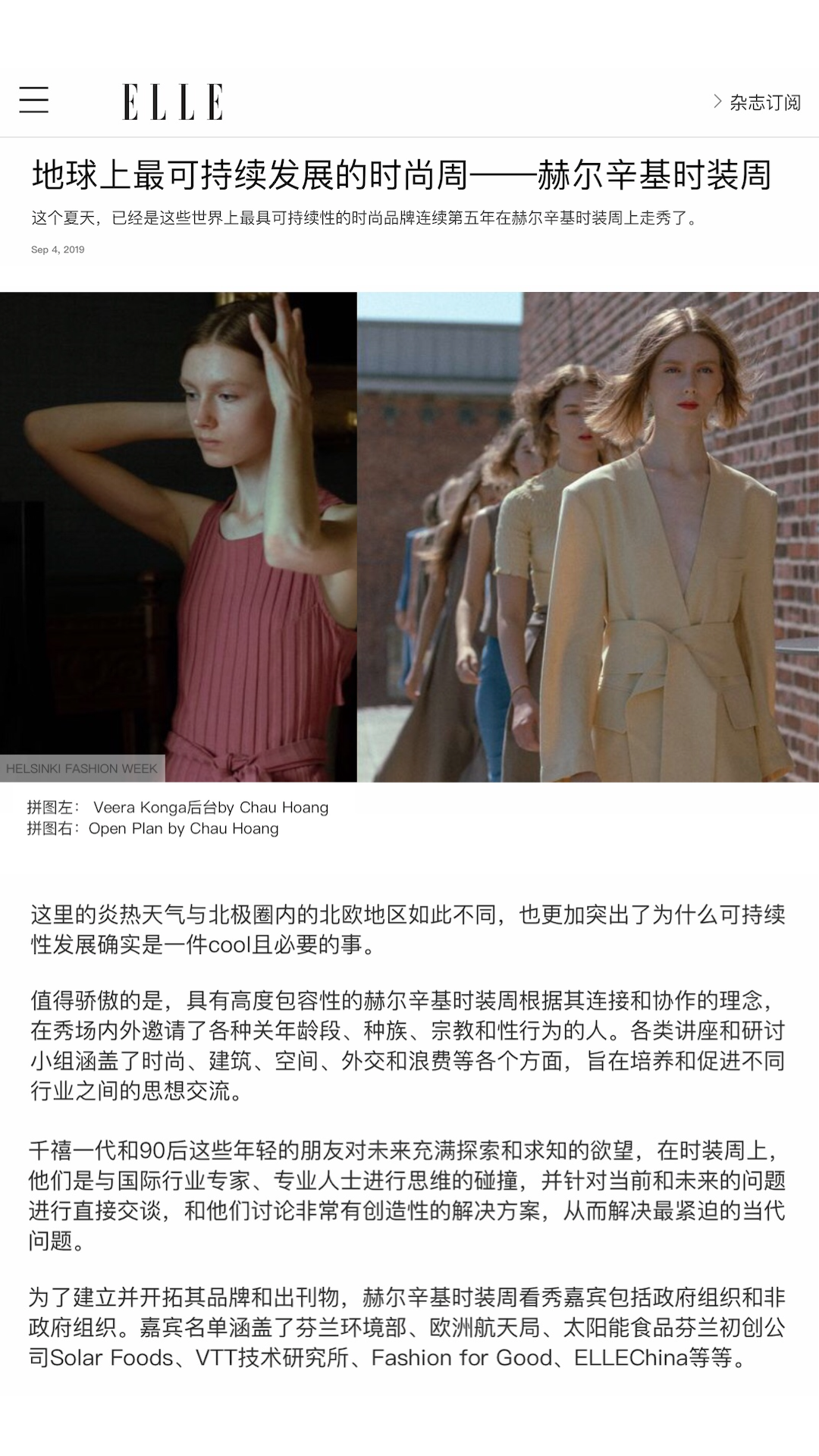 OPEN PLAN, featured in Elle China with Helsinki Fashion Week.