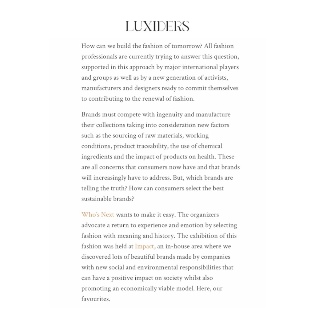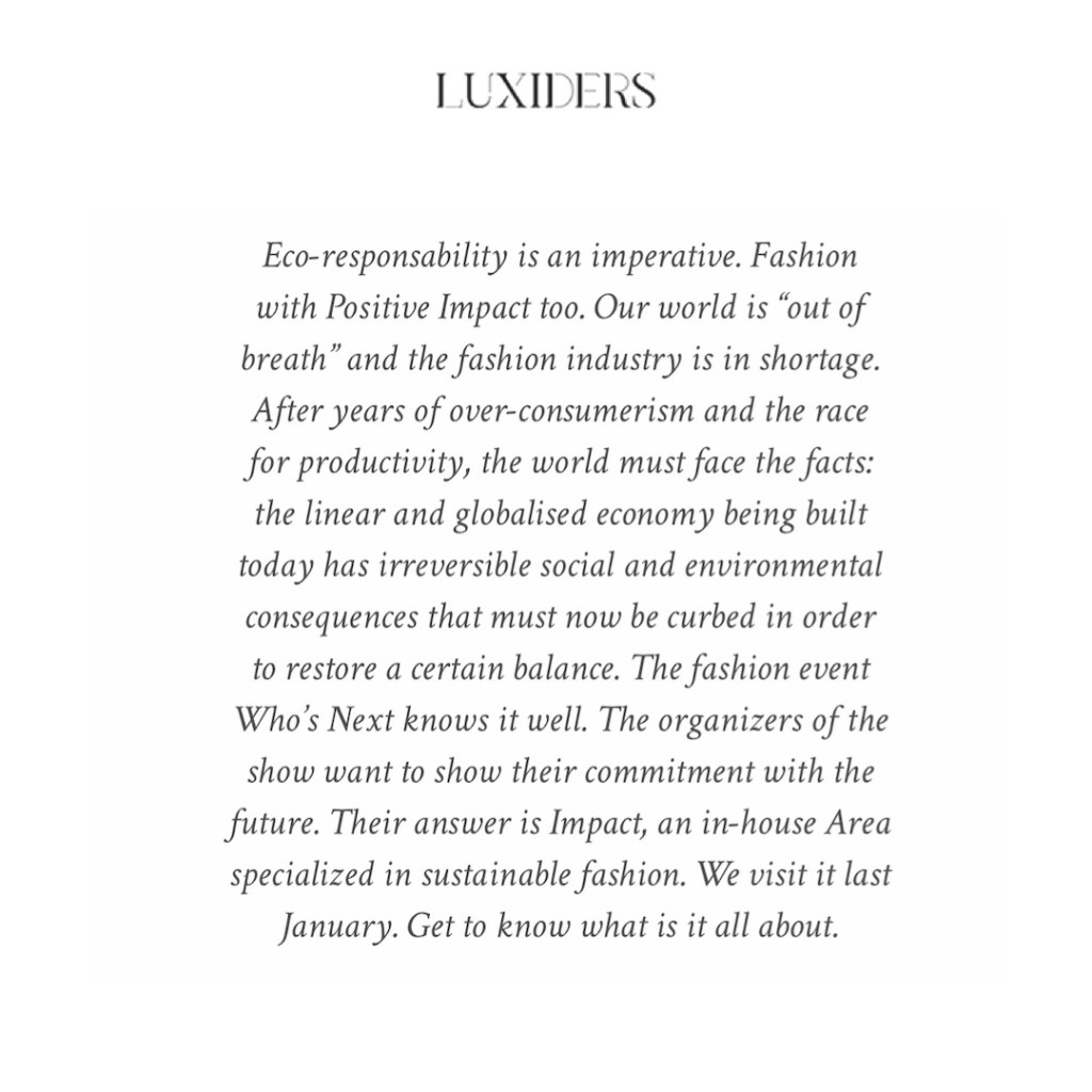 I met them, LUXIDERS at IMPACT in last January. It was short time but I could feel their intense sincerity on sustainability. And I’m happy to be featured in their latest article. Here it is.